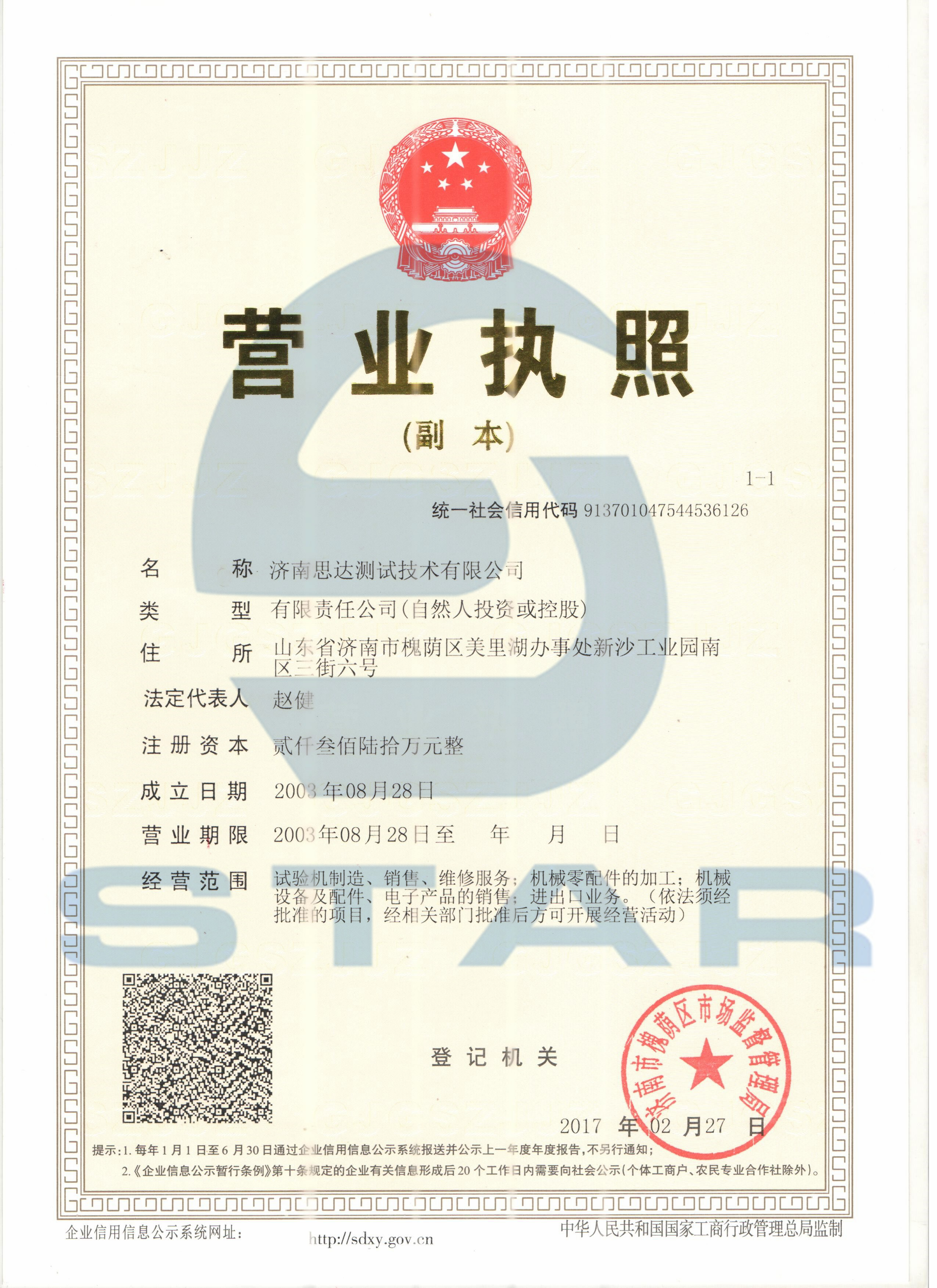 濟南思達營業執照、地址變更通知